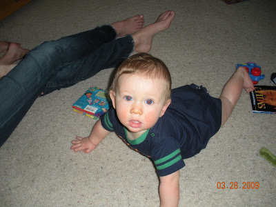 Justus is crawling everywhere these days, trying to get into trouble!! He lovest o eat anything on the floor so we're teaching the girls about choking and all that fun stuff. They're so good with him.